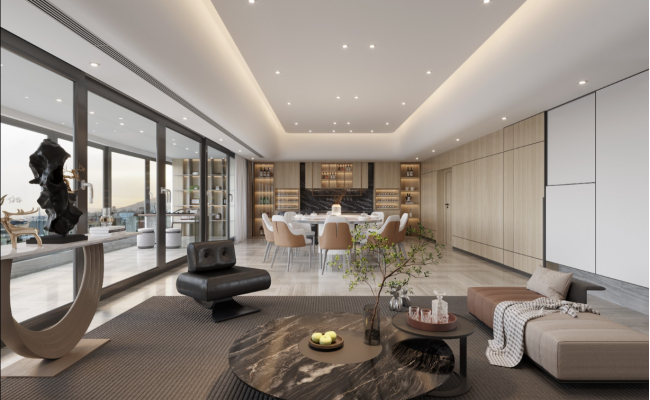 本設計以現代簡約為核心風格,融合奶油風的溫柔質感與輕奢元素的精致細節,打造客餐廚一體化的通透居住空間,兼顧美學與實用功能。