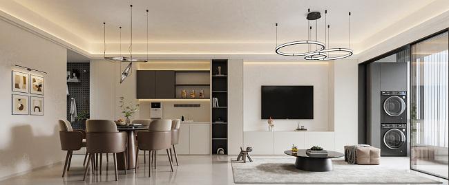 當極簡家融入原木風,就是高級和生活并存的家,不失煙火氣又不失質感。 客廳沒有復雜的裝飾設計,回歸簡單,才是家的常態,質樸的木頭,柔軟的布藝,它們靜靜的傾聽著這個家里的溫暖故事.