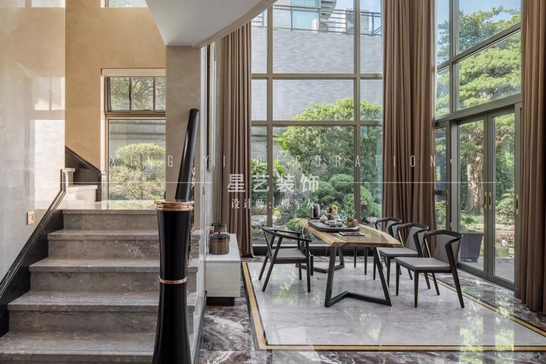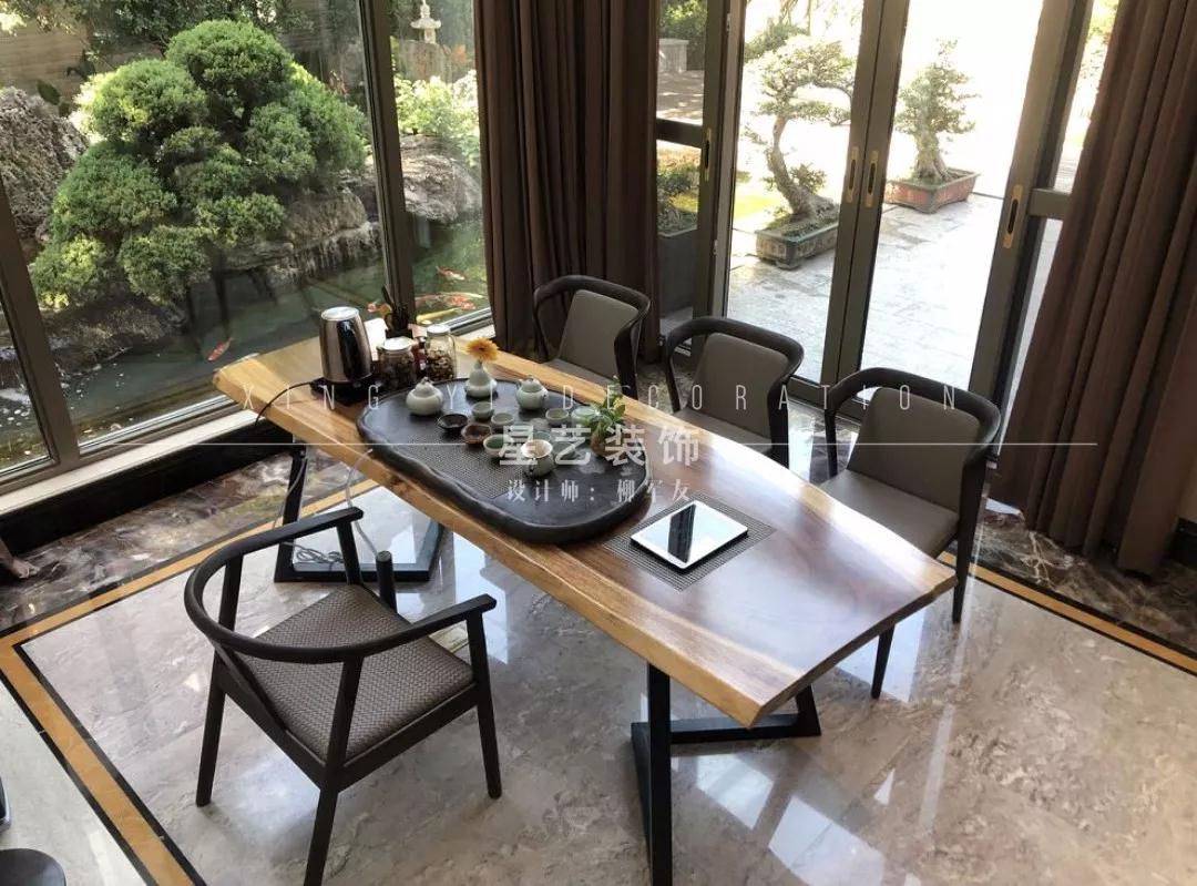 French Windows maintain a transparent and open atmosphere in the space. Looking out of the window, you can enjoy the fish pond. The leisure area for tea tasting is in harmony with the courtyard. Flowers, trees, lights and shadows are here to attract friends and entertain guests, or to enjoy tea and read alone, so as to create a tranquil and tranquil spiritual residence.