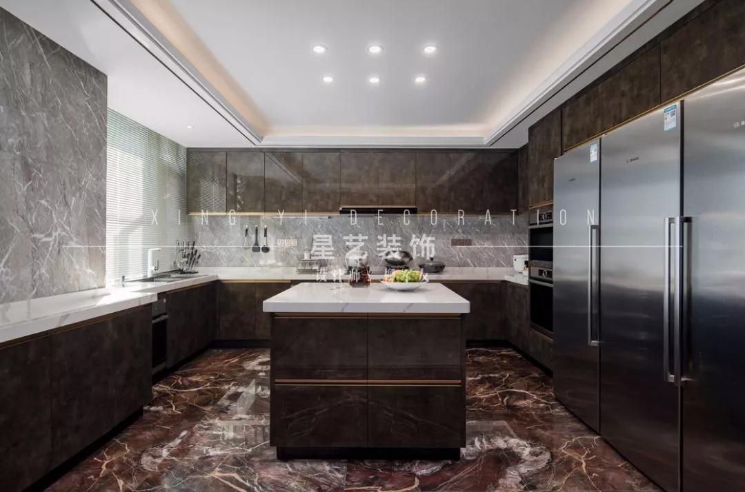 Enter in the right side of the sitting room is the space of guest dining-room and kitchen differentiate combination, with elegant inside collect design language will spread out a space, metallic copper is lubricious decorate among them, combine what different material pledges, texture, colour and lustre and modelling apply, reveal life light languid is lazy, also be the classic expression that reflects wind of type of light luxury Hong Kong.