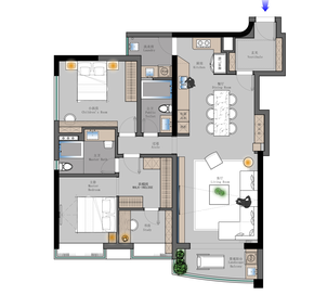 原來(lái)獨(dú)立的三房改成主臥大套房和小孩房,