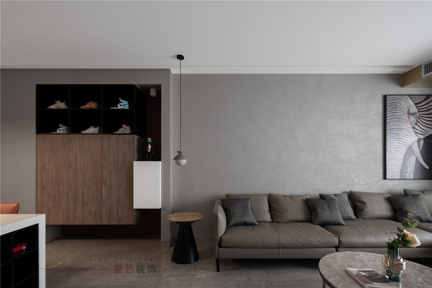 大面積高級(jí)灰的客廳質(zhì)感十足,