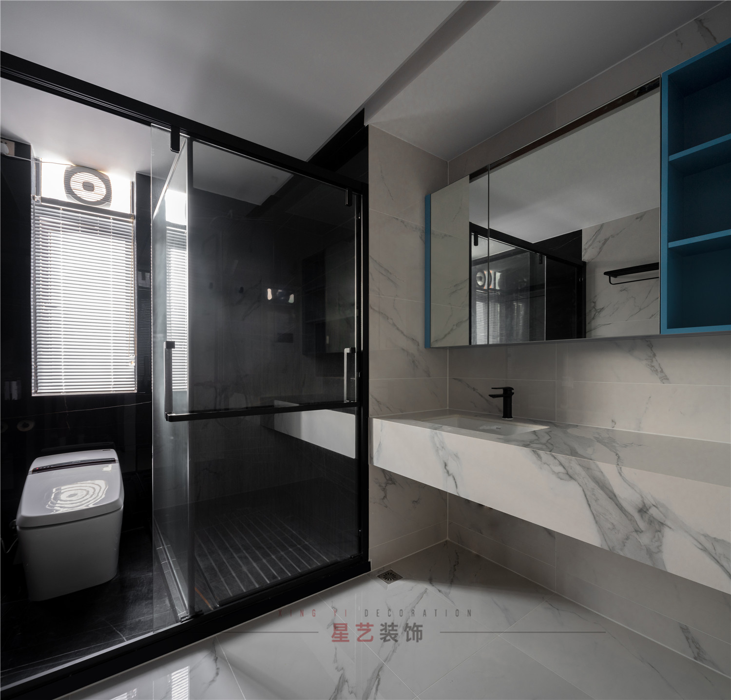 白色部分為洗漱區(qū),大理石紋理暈染飄逸,